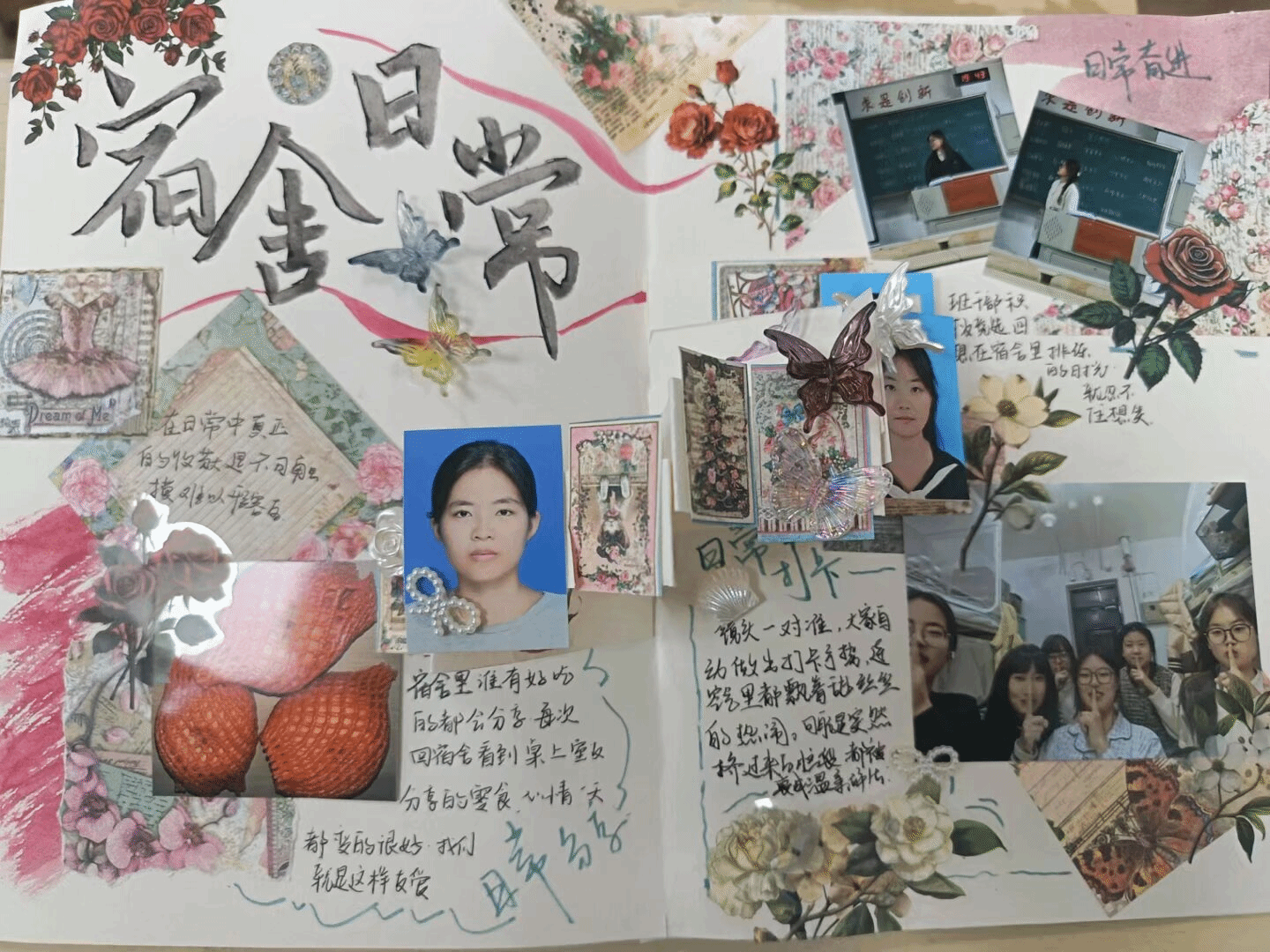 本次活动以团体合作的方式,用多彩涂鸦搭配卡通元素,在手账中记录下宿舍成员“最深印象”、“再见面时”等重要时段的宿舍成长回忆。一幅幅手绘勾勒了鲜活场景,在充满青春活力与个性色彩的同时,又兼具温馨意义与巧思创意,展现了宿舍的温馨与奋进氛围。