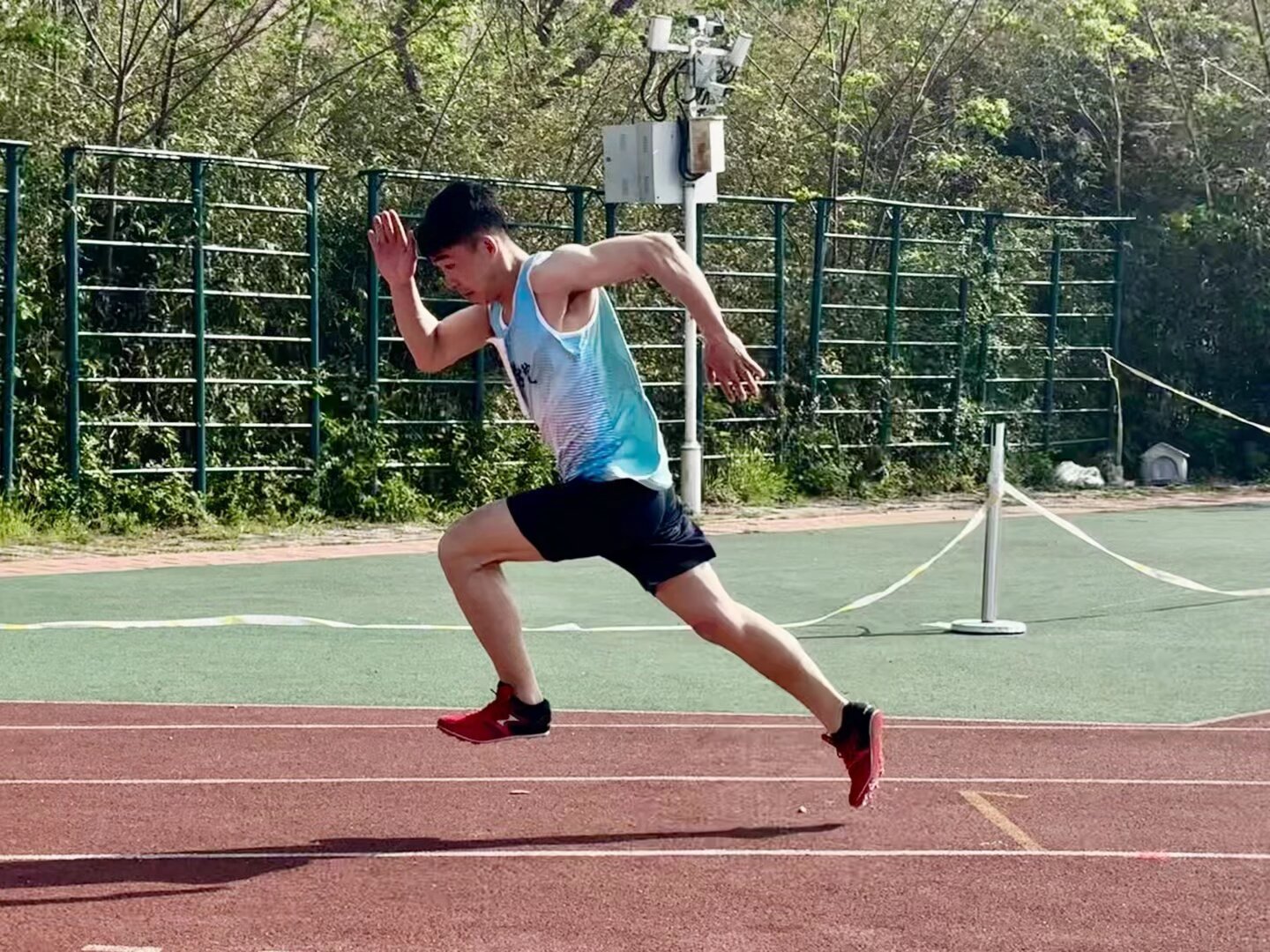 发令枪响划破赛场,百米赛事正式开赛。运动员们如离弦之箭奋力奔跃,目光坚定,向着终点全力冲刺。赛道两侧掌声与助威声此起彼伏,热烈的氛围席卷整个赛场。跳远赛场之上,参赛选手助跑、起跳、腾空,身姿轻盈舒展,在空中勾勒出利落的弧线,凭借力量与技巧不断向着更远的目标发起冲击。紧张激烈的4×100米接力赛事同步上演,四名队员默契配合、同心协力,每一次摆臂、每一步蹬地都饱含力量与信念,在接力传递中展现出顽强拼搏的团队风采。