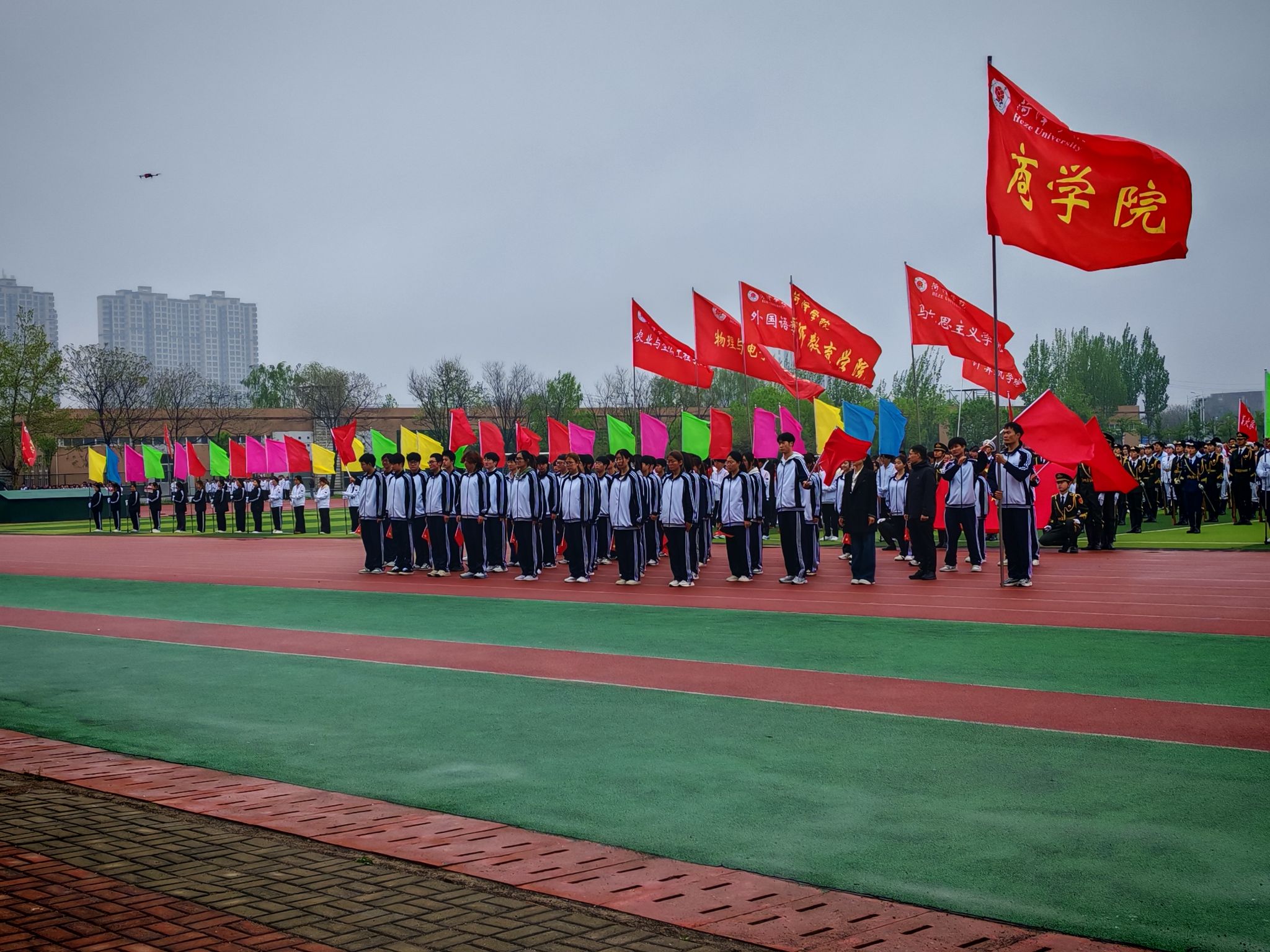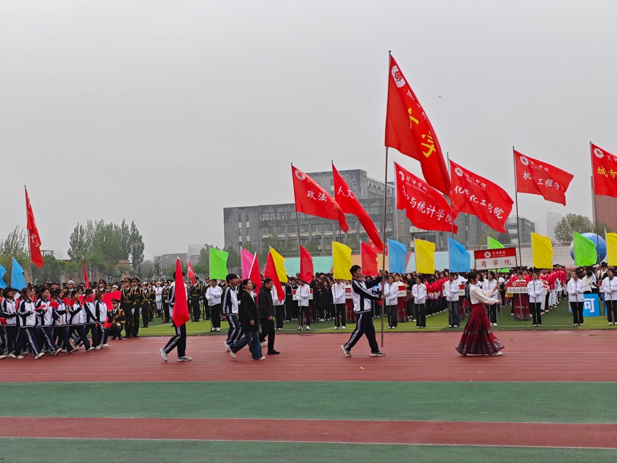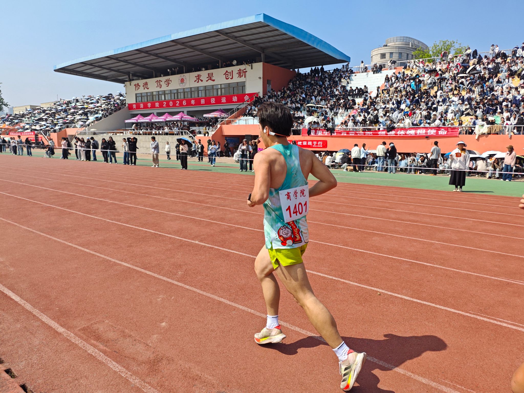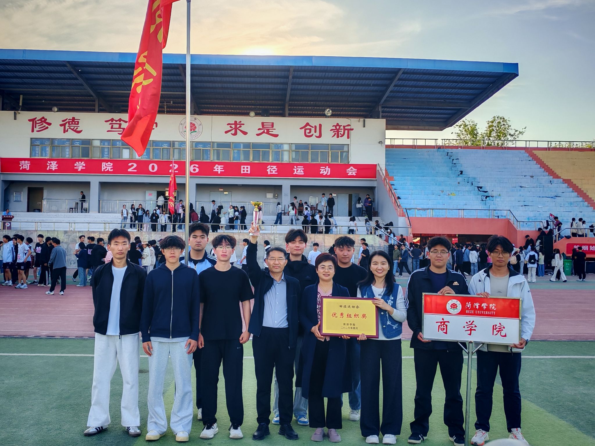 春日焕新活力,运动铸就风采,为深入践行全民健身理念,丰富校园文体生活,展现师生昂扬风貌,4月9日-10日,由菏泽学院主办,体育与健康学院承办的2026年春季田径运动会于我校田径场举行。商学院师生积极参加。