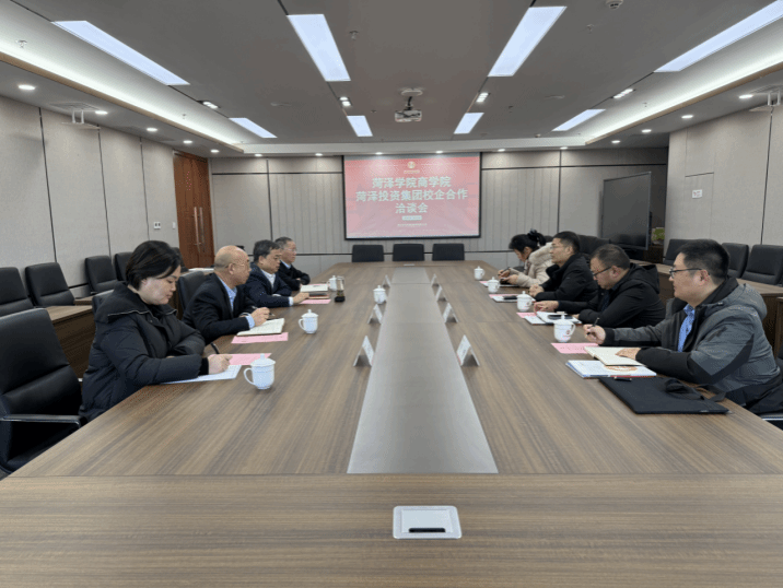 为深化产教融合、促进校企资源共享,进一步推动人才培养与地方产业精准对接,12月25日,商学院党委书记尹鹏,党委副书记朱贺,党委委员、副院长洪梅香等一行到菏泽投资集团开展校企合作座谈会。菏泽投资集团党委书记、董事长丁万国,党委副书记、总经理祝传随,副总经理、菏泽人才集团总经理陈杰等参加座谈。