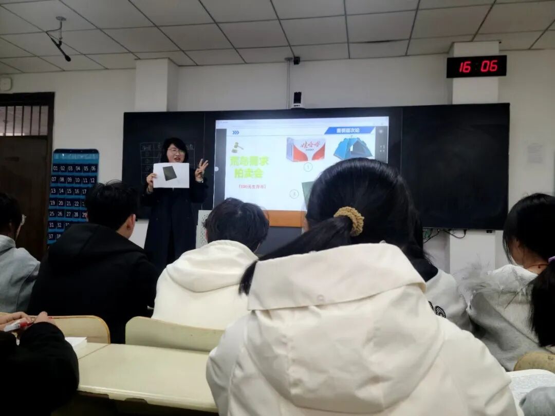 课堂上,张慧以“情境教学+AI赋能+小组研讨”的创新模式,将经典管理学理论讲出新意与深度。课程以“荒岛需求拍卖会”趣味情境导入,通过小组讨论、互动竞价、板书梳理,引导学生在体验中自主探究理论逻辑,实现“做中学、悟中学”。她系统阐释需要层次理论核心内容,有机融入国家战略与本土实践案例,推动专业教学与课程思政深度融合,同时紧扣数字时代特征,借助人工智能工具生成需求层次模型,组织学生使用交互式的演示方式,将抽象的理论重构过程变得可视化、动态化,充分展现了AI+教育的前沿魅力与课堂活力,获得全场高度认可。整堂课设计精巧、逻辑清晰、互动充分,兼具理论厚度与时代前沿性,实现了从知识传授到价值引领、从传统课堂到智慧课堂的有效升级。
