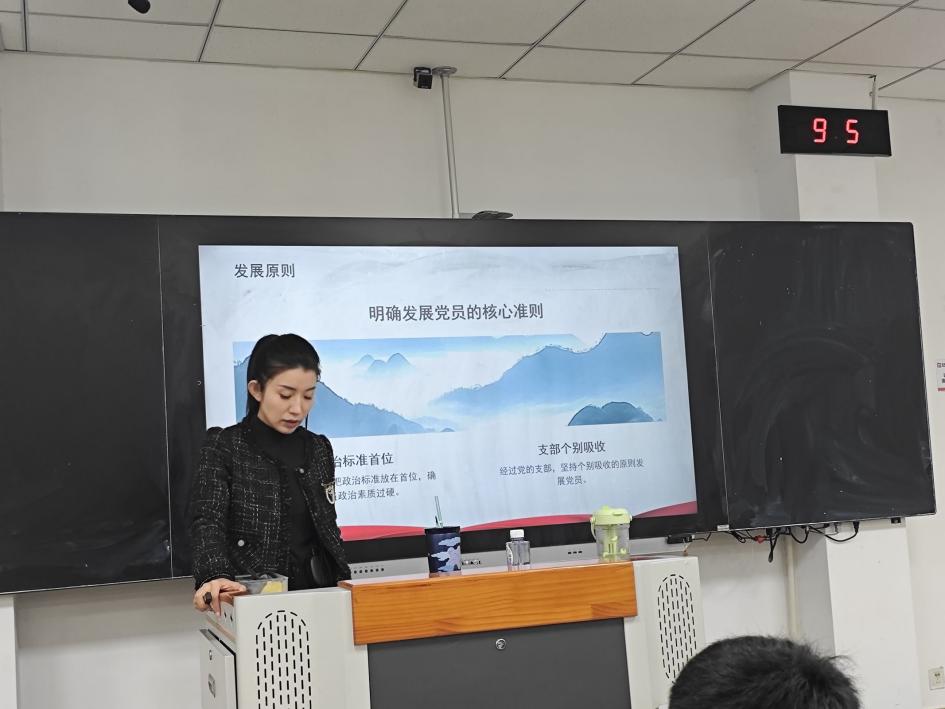 为切实提升党员发展对象的政治素养与思想觉悟,为党组织输送合格的后备力量,10月25日,商学院在8号教学楼214教室举办2025年党员发展对象培训班。本次培训分别由学生党支部委员毛嘉宁、教工党支部委员高辉和学生第二党支部书记贺民担任主讲。