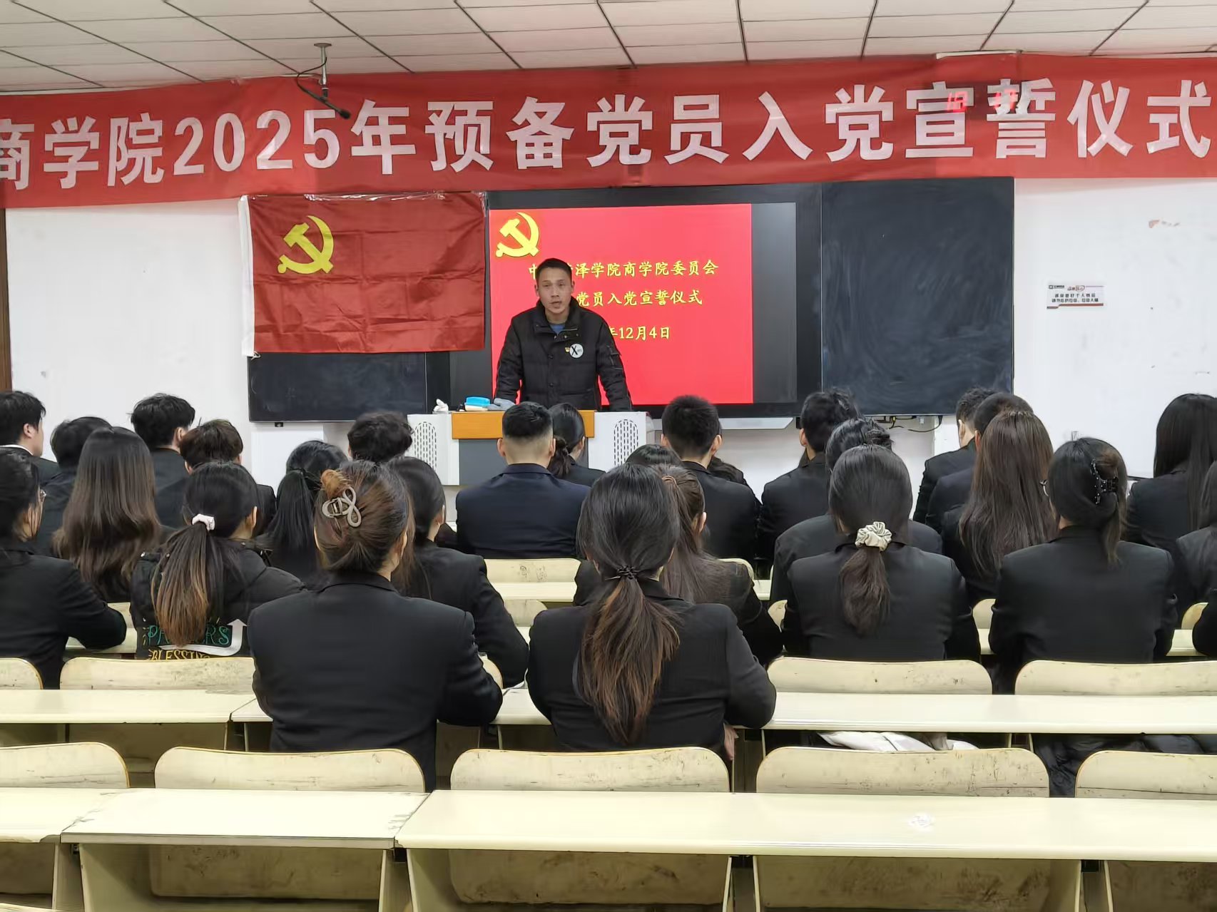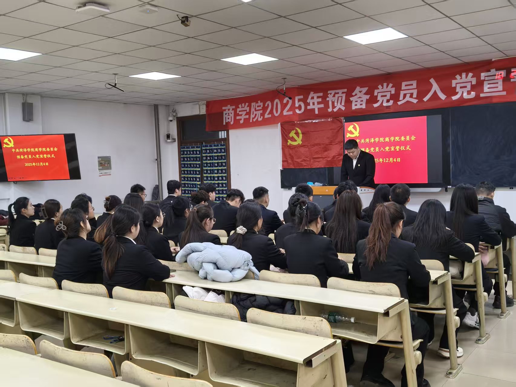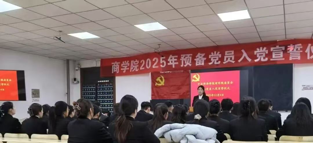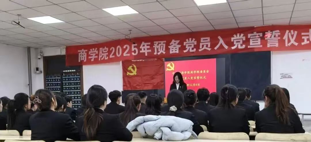 为进一步强化预备党员的党性修养与身份认同,筑牢信仰之基、补足精神之钙,12月5日,商学院在8号教学楼204教室隆重举办2025年预备党员入党宣誓仪式。商学院学生党支部委员朱树荫、夏修新及新加入党组织的预备党员、正式党员代表出席会议。