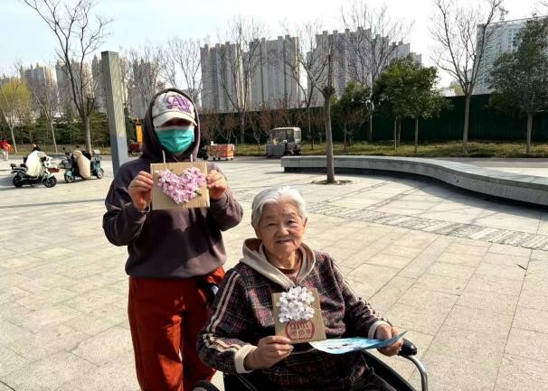志愿者们陪伴老人户外休憩交流,与老人们亲切交谈、闲话家常,现场氛围轻松融洽。借此契机,志愿者们开展了“我与春天的第一张合照”爱心拍照活动,耐心引导老人调整姿态,用镜头定格下老人们轻松愉快的美好瞬间。一张张合影不仅留存下温暖的陪伴瞬间,更承载着真挚的关爱与温情,让老人们真切感受到关怀与温暖,进一步丰富了老年群体的精神生活,切实提升了老年人的幸福感与获得感。