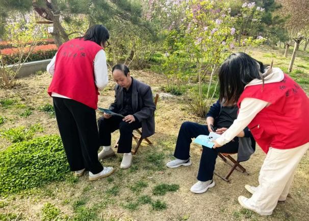 为解决无陪同老年人就医难题,让银发群体享有更便捷、有尊严的就医体验,菏泽学院商学院联合城市建设学院推出“菏泽学院爱心陪诊”小程序,以专业与温情为老人提供全程就医陪伴服务,充当老人们的“临时亲人”,切实缓解老年人看病难、无人陪同的问题,减轻家庭照护压力,让老人舒心、子女放心。为进一步推广该线上预约程序,让更多老年群体轻松便捷就医,志愿者们走进环堤公园开展暖心宣传活动,现场向老人们发放精心制作的宣传单,细致讲解陪诊服务的各项内容,手把手指导老人们操作小程序预约流程,耐心解答大家提出的各类疑问。此次宣传活动让老年人对线上陪诊服务有了更全面深入的了解,切实化解了老年群体挂号难、就医流程不熟悉等实际问题,志愿者们把便民利民服务真正送到老年群体身边,大力弘扬了志愿服务精神,充分彰显了当代青年大学生的责任与担当。