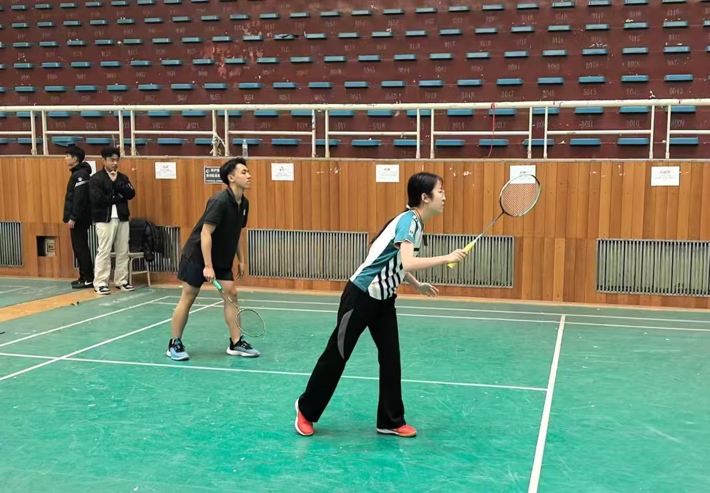 比赛现场,商院健儿们精神饱满、斗志昂扬。比赛中队员们灵活跑位、精准扣杀,每一次挥拍都凝聚着力量,每一次救球都彰显着坚持。他们以默契的配合与顽强的拼搏,在赛场上绽放青春光彩。本次参赛,全队上下凝心聚力、互帮互助,充分展现了商学院学子团结奋进、永不言弃的精神风貌。赛场之上,队员们用实际行动诠释了“更高、更快、更强”的体育精神,也为学院书写了昂扬向上的运动篇章。