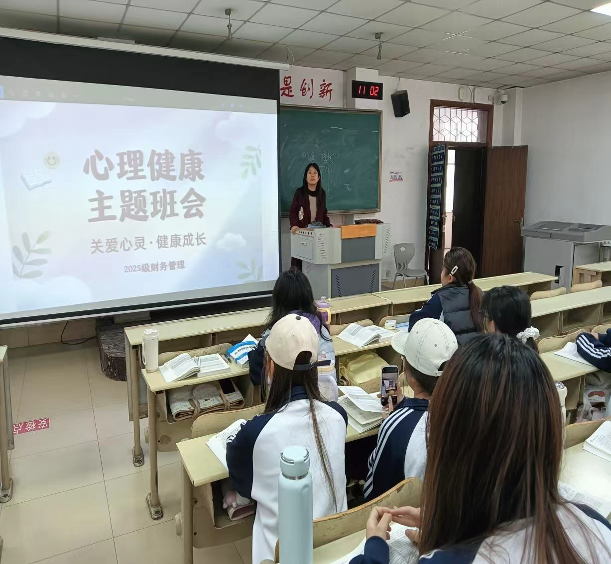 本次班会紧扣情绪觉察、压力疏导、心理调适核心内容,紧密贴合学生日常学习生活实际,聚焦学业焦虑、人际交往、情绪内耗等常见心理问题,通过案例分享、互动问答、情绪调节技巧讲解、小组交流探讨等多样形式,引导同学们主动正视情绪波动,深入了解心理压力的来源与应对方式。班会现场氛围轻松融洽,同学们踊跃分享自身情绪困扰,共同探讨缓解压力、调节情绪的实用方法,在交流中实现情绪共鸣与心理解压。