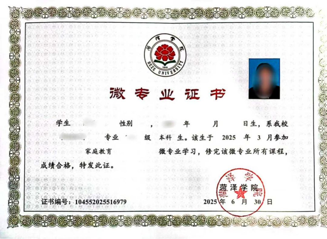 学生修完本微专业全部课程并通过考核,达到15学分要求后,由菏泽学院颁发“数字经济”微专业证书,证书信息纳入学校学籍管理系统,教育部备案,学信网可查询。